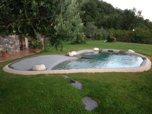 Faciles à entretenir, ces piscines naturelles d’origine italienne sont créées sur mesure. Contenant du sable quartz, ces piscines facultativement au sel sont fabriquées à bases de matériaux hydrofuges (hydromasse) et peuvent accumuler de la chaleur.